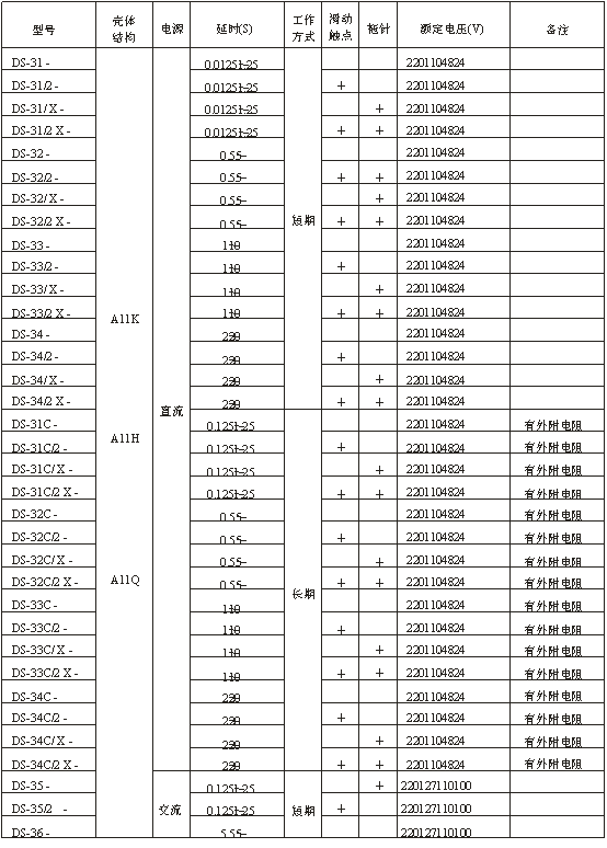 对于交流短时工作的:DS-35,DS-36,DS-37,DS-38不大于20VA。